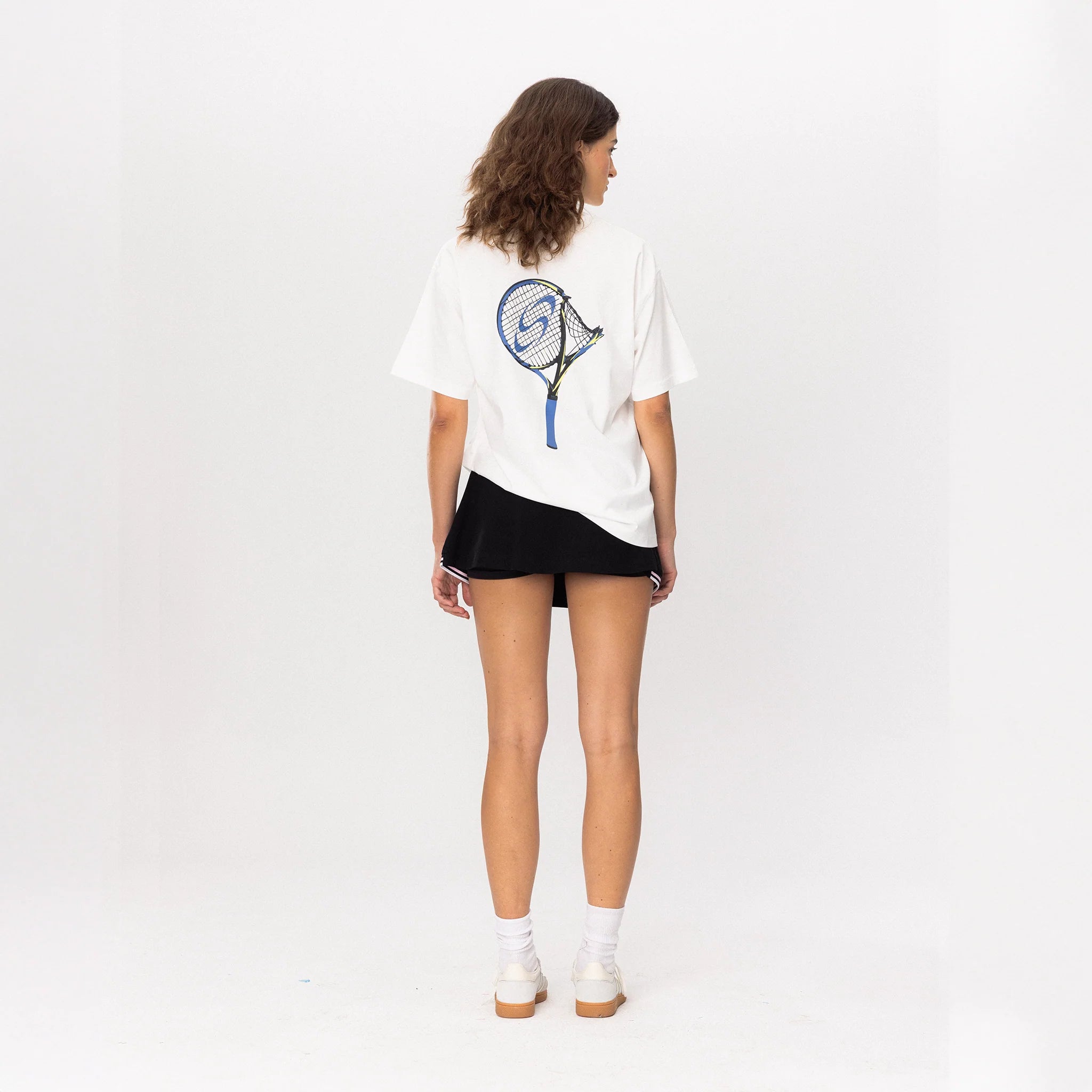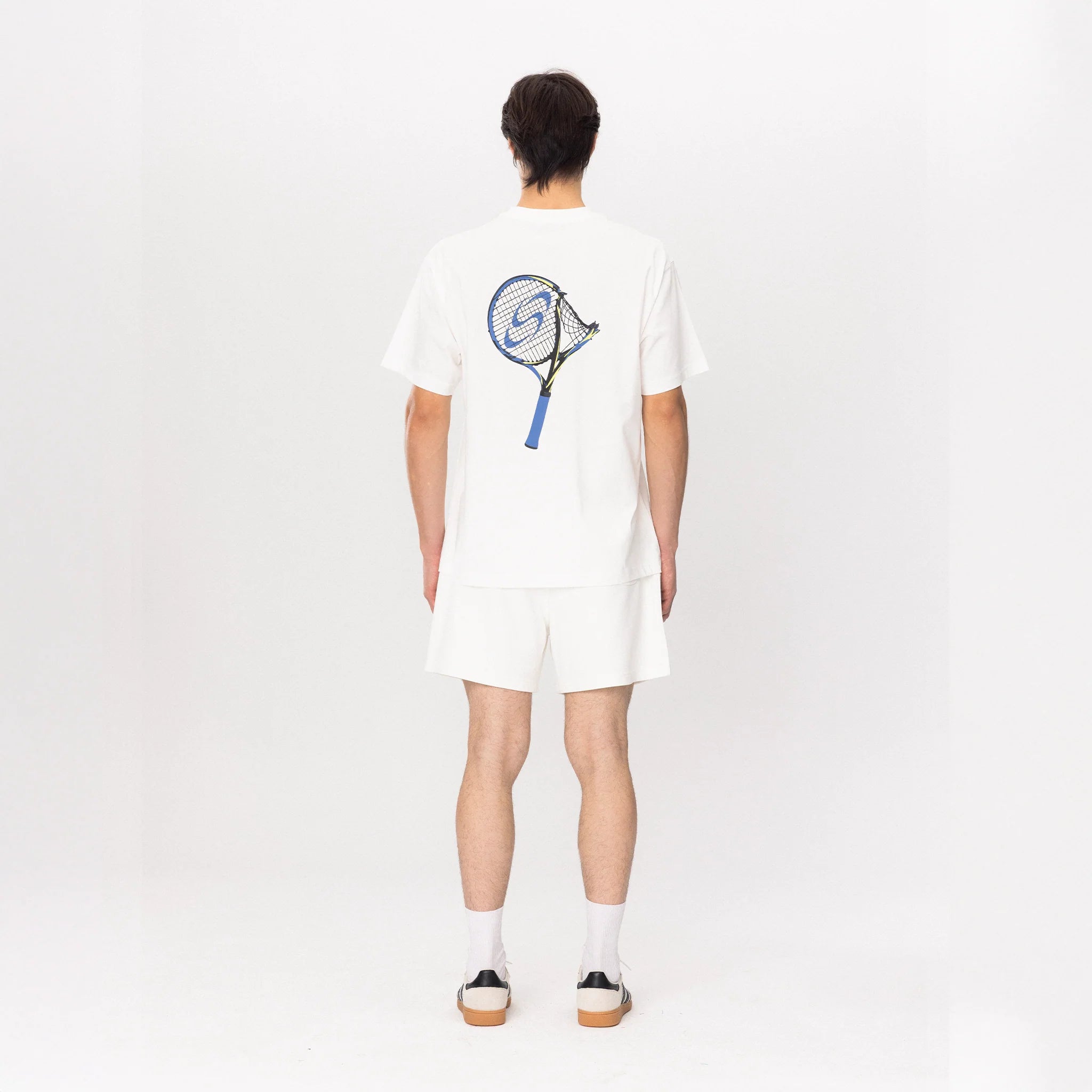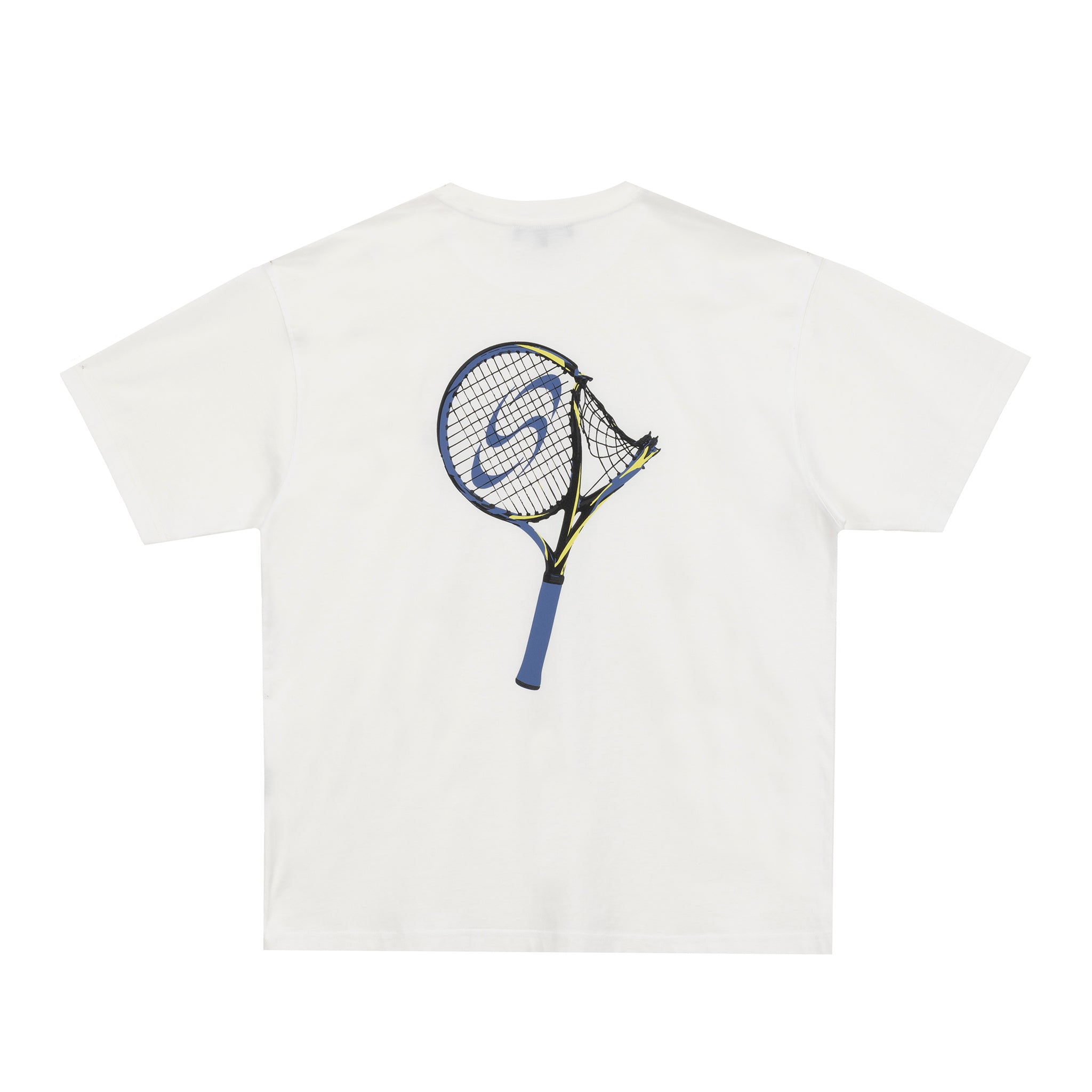 Printed on heavyweight organic cotton, the tee brings court energy into everyday street style. The blue-yellow detailing adds a sharp contrast, making the back graphic the statement piece of the look.