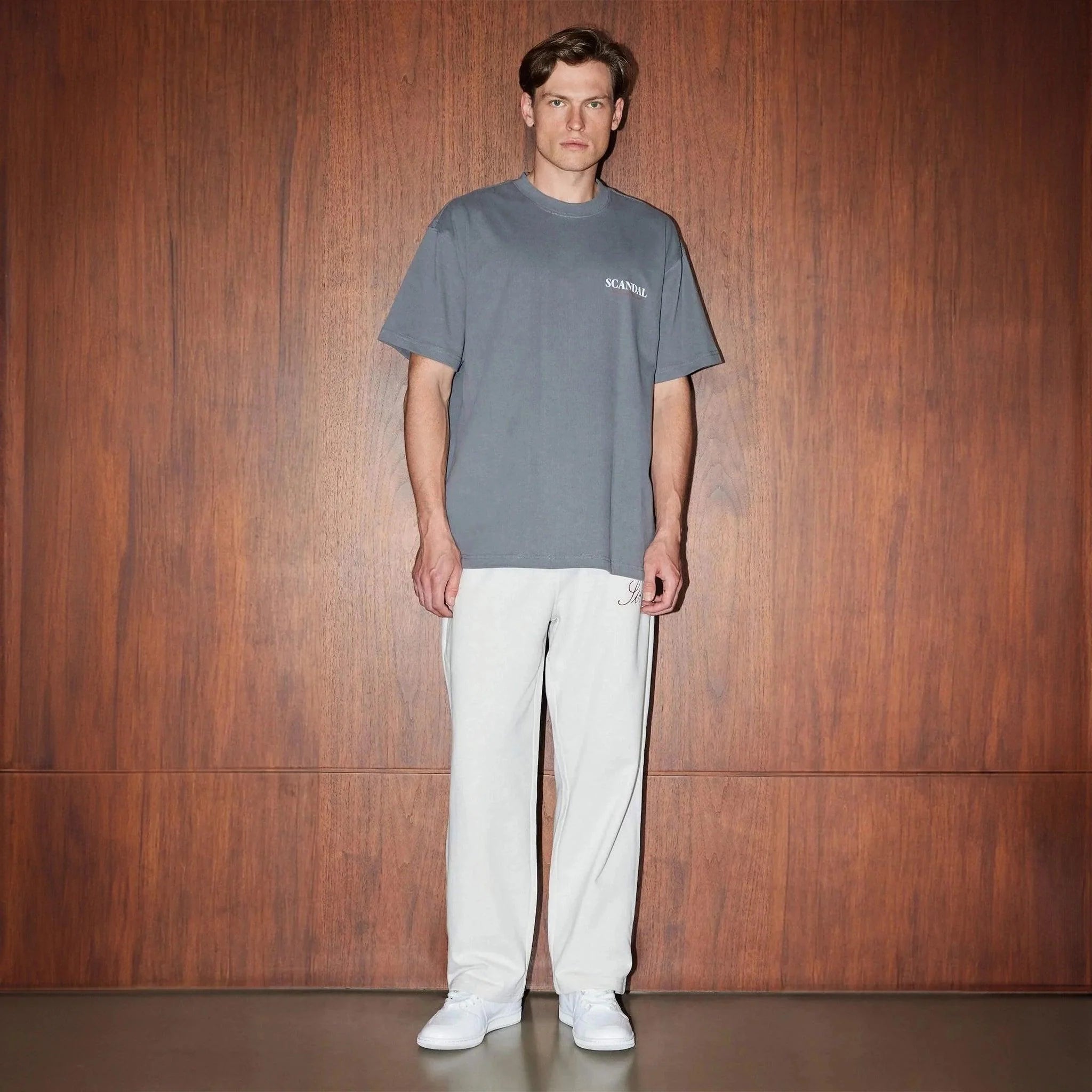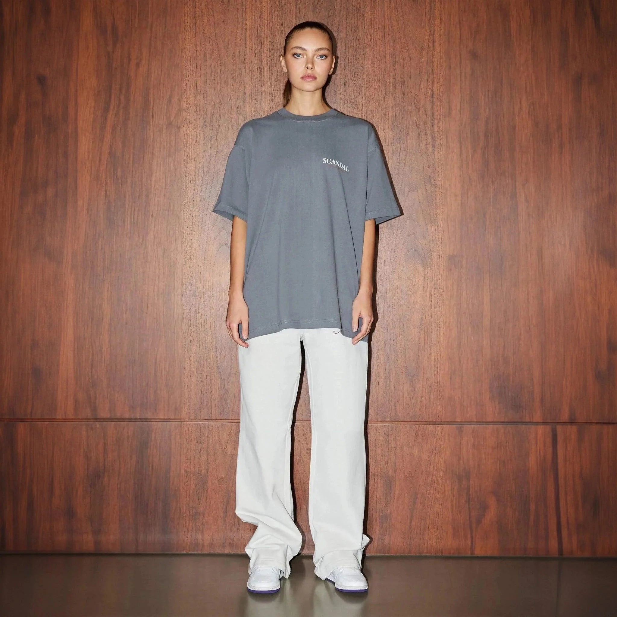 100% organic cotton Scandal T-Shirt in Lava Smoke. Constructed in a relaxed fit and featuring the ‘Scandal’ and ‘Soon To Be Announced’ artworks in White and Royal Burgundy.