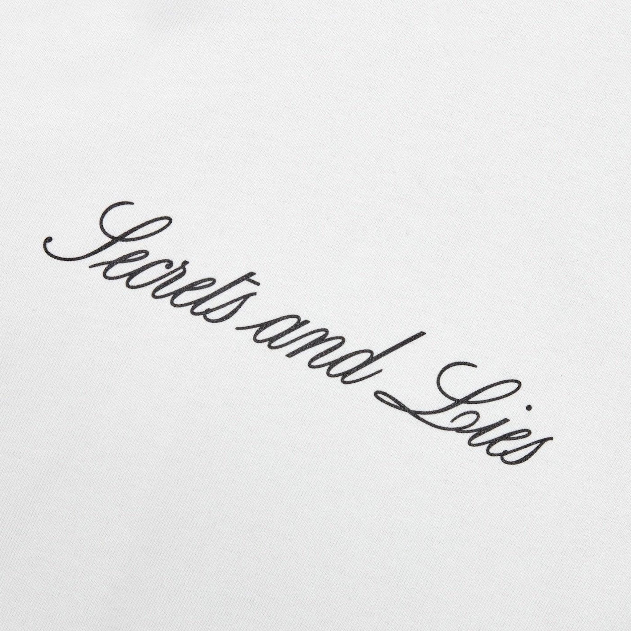 - Features a cropped and relaxed fit, with the ‘Secrets & Lies’ artwork in Black.