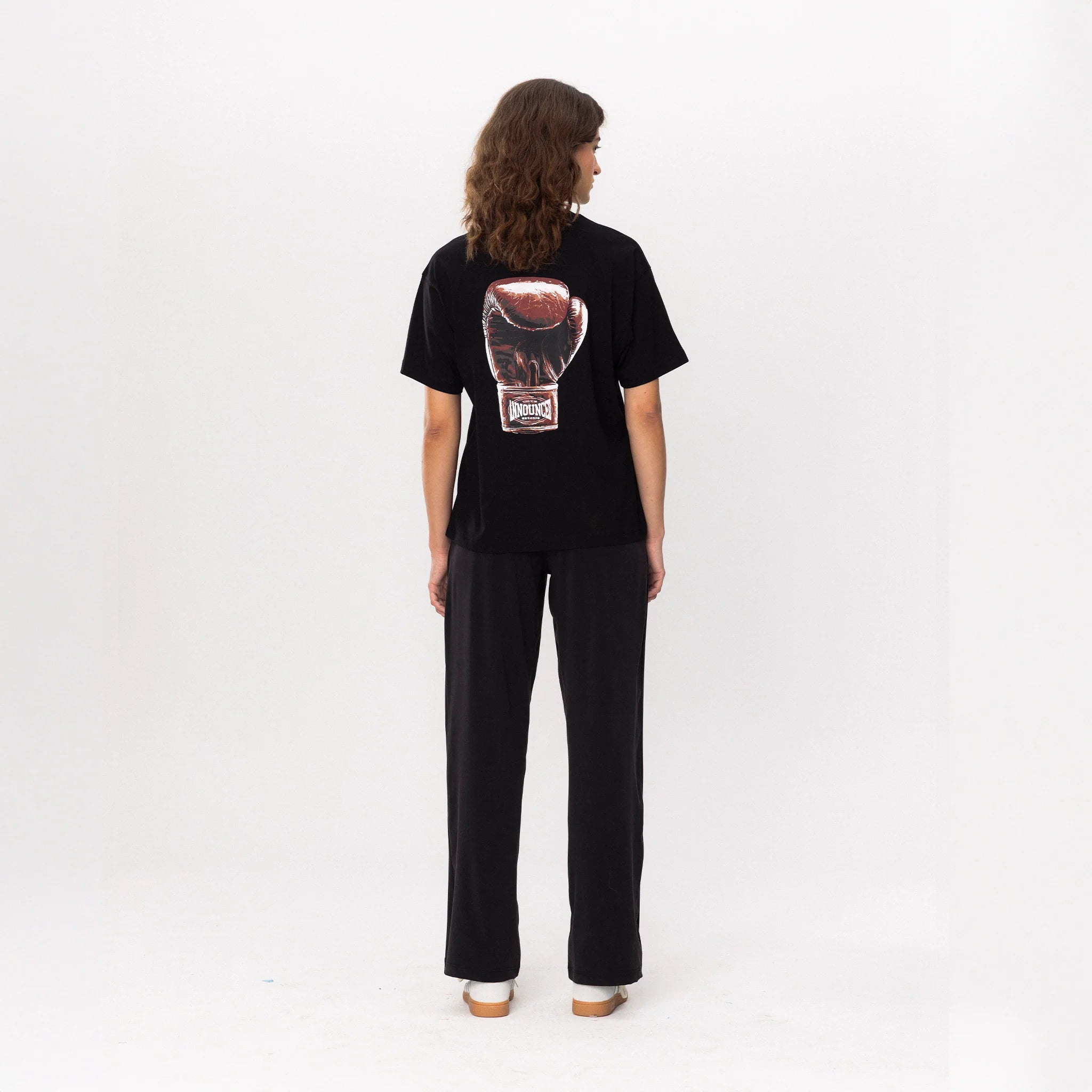 The Boxing Glove Tee combines a minimal ring-logo chest print with a bold, hyper-realistic boxing glove graphic on the back- a statement piece that hits before you even say a word.