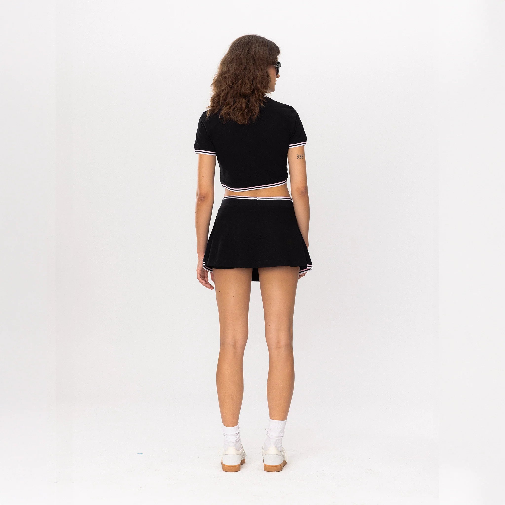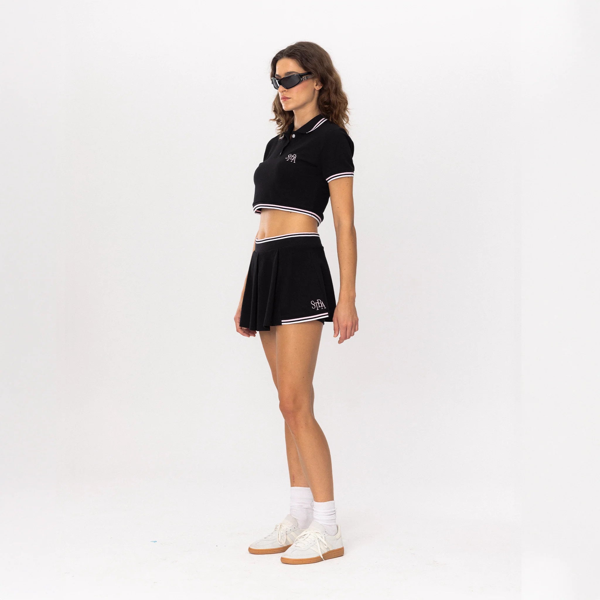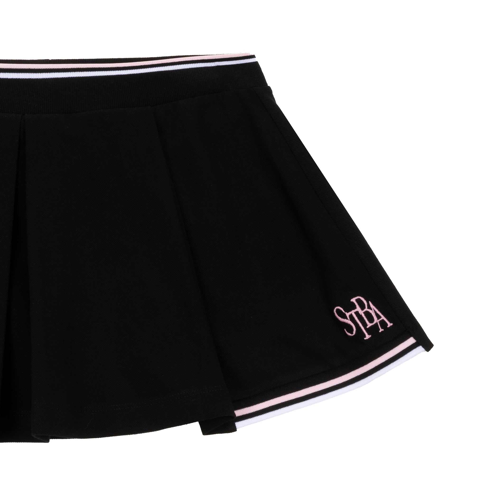 The Tennis Academy Skirt brings the classic pleated tennis silhouette into the STBA universe with a sleek black base and soft pink detailing. Lightweight, comfortable, and designed with perfect flow.